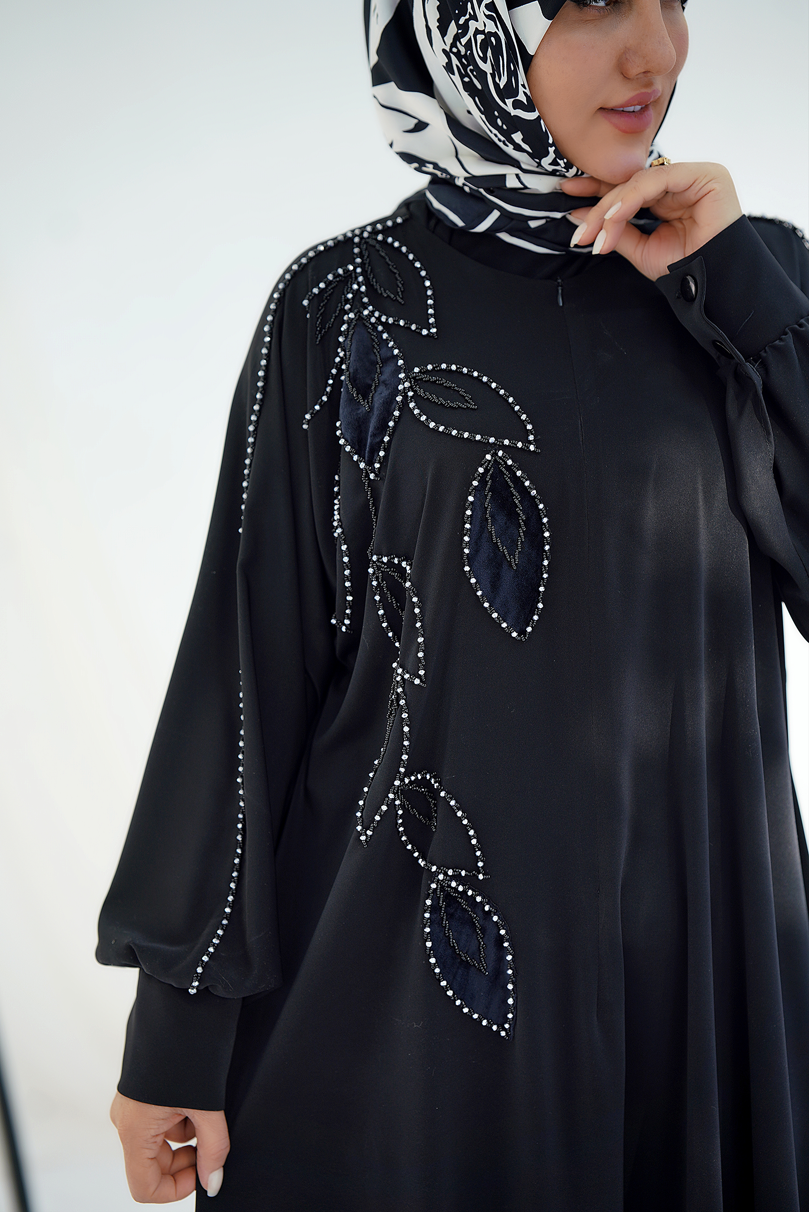عباگلبرگ جواهردوزی ترکیب کریستال ومخمل که تماما کاردسته جنس پارچه سوپرالیزه است که نخکش وچروک نمیشه از داخل بند تنظیم داره یقه اش یه زیپ سی ثانتی میخوره که برای شیر دهی هم مناسبه